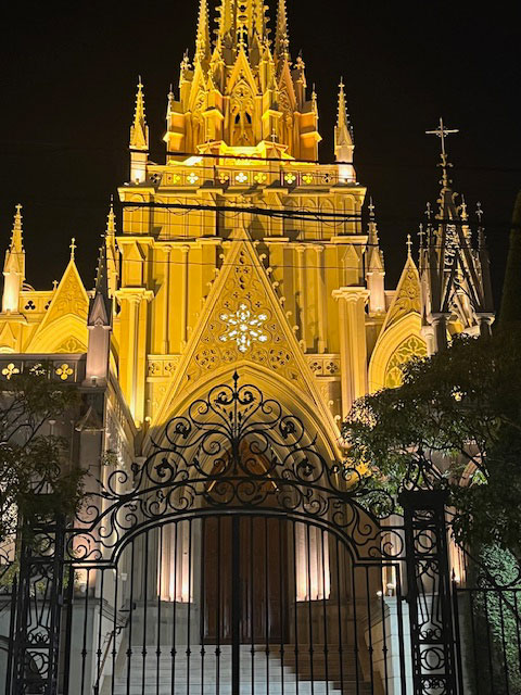 お仕事移動中に、素敵な結婚式場を発見。夜のライトアップもいい感じです