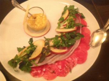 ブリのカルパッチョ、、麻布十番のイタリアンで。りんごがきいていました