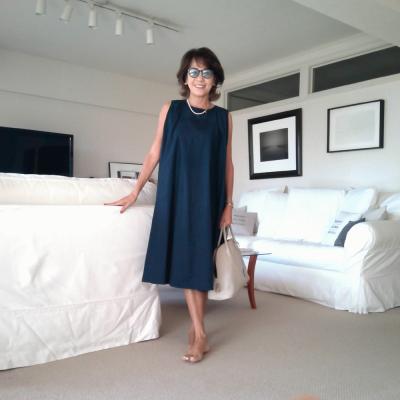 夏から何度も登場した大好きなワンピース。サングラスもネイビーで合わせてみました