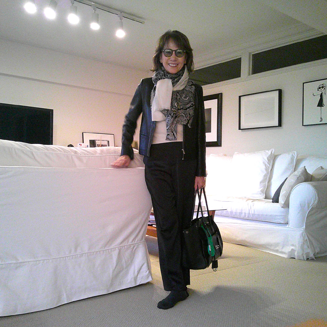 スカーフをポイントにコーディネイト。バッグとの相性も抜かりなく