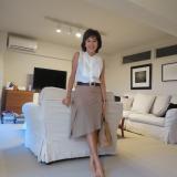 ベージュのスエードスカート+白いブラウスでお仕事スタイルにまとめてみました。
