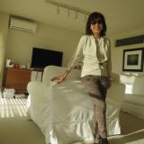 セミナーで登壇する日は白シャツにネイビーのカーディガンで。