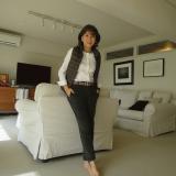 ブルーのブラウスは優しく見えるので初対面の方にお目にかかる日に重宝します。