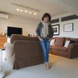 アースカラーのストールをプラスするだけで、大人のキレイめカジュアルに。