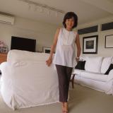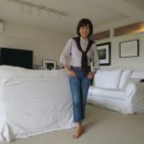 ノースリーブ着用時は、冷房対策で大判のストールが出番です。