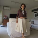 五分袖カーディガンにエレガントなスカートを合わせて、たまには女らしく。