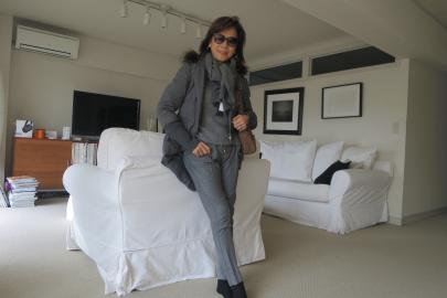 ストール、サングラス、髪・・・顔まわりは色バランスが大切です。